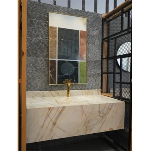 Elegant Calacatta Gold Marble Vanity With Seamless Design