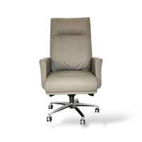 Backrest:High-back design covered in beige natural leather, providing optimal lumbar support and comfort for long working hours