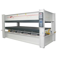 • Available in widths from 1300 to 2200 mm and lengths from 1300 to 5200 mm, the press supports electric diathermic oil or water heating systems, electric resistance heating plates, and provision for external heating system connections, with operating temperatures up to 300 °C