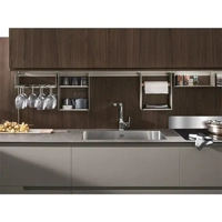 • Designed for customers who appreciate clean lines and highlight the best materials and contrasting colors, Karma features doors with integrated handles and three types of opening mechanisms that define and decorate the kitchen: full-length handle, partial-length handle, and anti-grip handle - details that create an original look and ensure maximum functionality