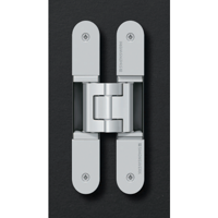 • With integrated intumescent kit, completely concealed hinge system for timber, steel or aluminium frames, suitable for unrebated heavy duty doors, featuring a sideways closed hinge body for a homogeneous mortise appearance with comfortable 3D adjustment (side ±3.0 mm, height ±3.0 mm, compression ±1.0 mm) and maintenance free slide bearings