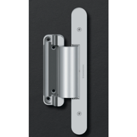 • Concealed hinge system for rebated entrance doors, featuring a sideways closed hinge body for a homogeneous mortise appearance with comfortable 3D adjustment (side ±3.0 mm, height ±3.0 mm, compression ±1.5 mm), continuous sealing system, 18 mm overlap width and maintenance free slide bearings