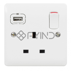 Legrand White Synergy 13A Single Switched Socket With USB